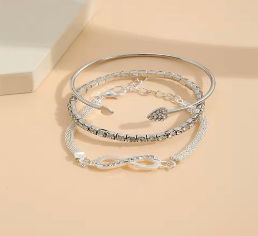 Infinity Bracelet Bangle Jewelry Set With Crystal Rhinestone & Heart Designs